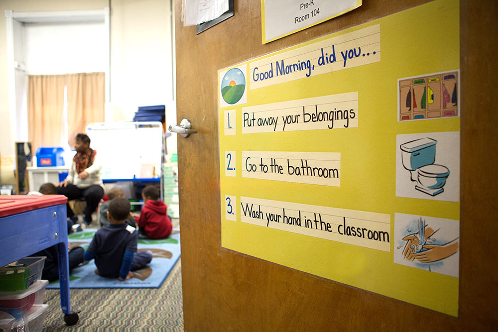 Morning Arrival - Transitions for beginning the day should be clearly thought out and explained to the children. Anchor charts with photos or drawings of the sequence children should use to complete their morning tasks is helpful.