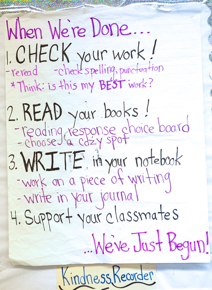 - Where is the schedule posted and how have you explained the meaning and importance of each component with students? Do you have visual supports for language learners?