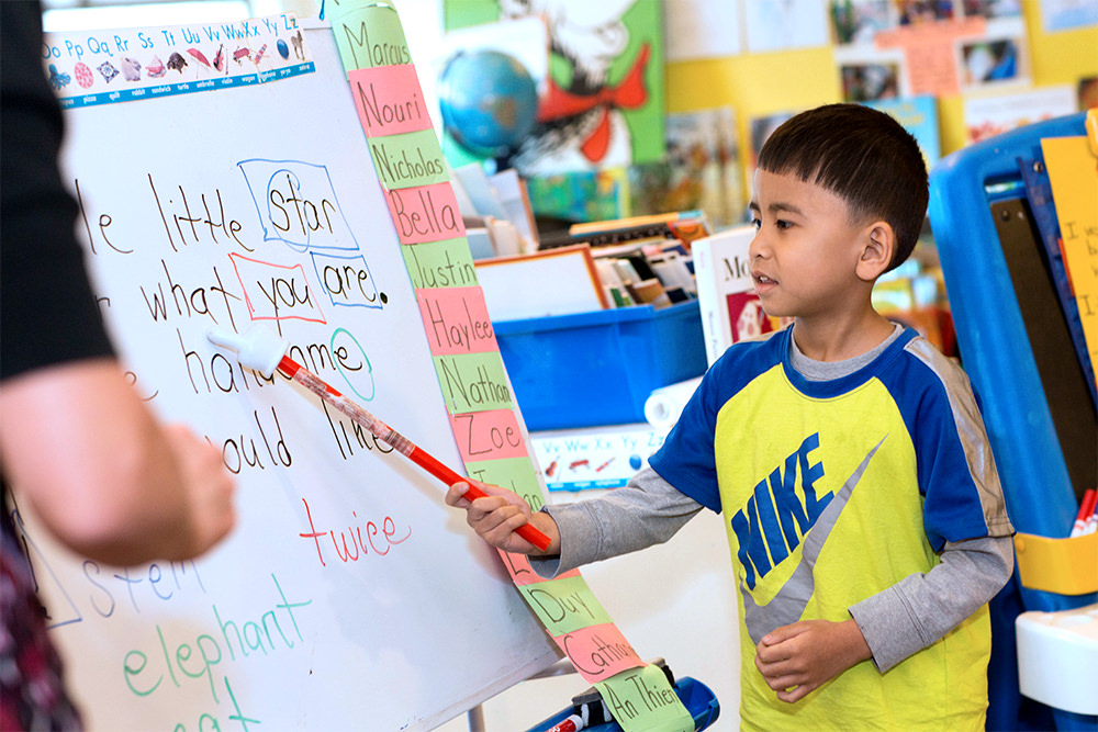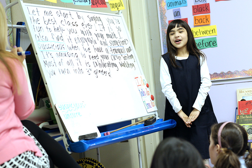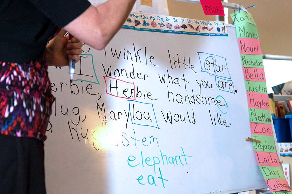 Risk-taking is encouraged during MTP by creating a community of learners in which all members of the classroom are valued for their individual thinking and contributions to the MTP lesson. In order to create this community, children are taught mini-lessons on how to give “wait time,” how to be active listeners, how to give specific encouragement, how to cheer on classmates, etc. The goal is that when each child finds an element of the message, s/he is empowered to think critically, knowing that s/he has the support and encouragement of the teacher and all classmates. Your role is to ensure that each scaffolding experience is successful and that the scaffolding experience guides, supports, and challenges the student. Make sure that the scaffolding doesn’t frustrate or embarrass the student or lack a learning opportunity. Supportive language should be used when guiding the child towards new learning, and you should encourage all children to openly support each other if this is not naturally occurring. Be sure that the child leaves the board feeling successful about what s/he found and learned. In a classroom atmosphere that supports risk-taking, children have daily opportunities to freely practice what they know while learning new skills and strategies along the way.